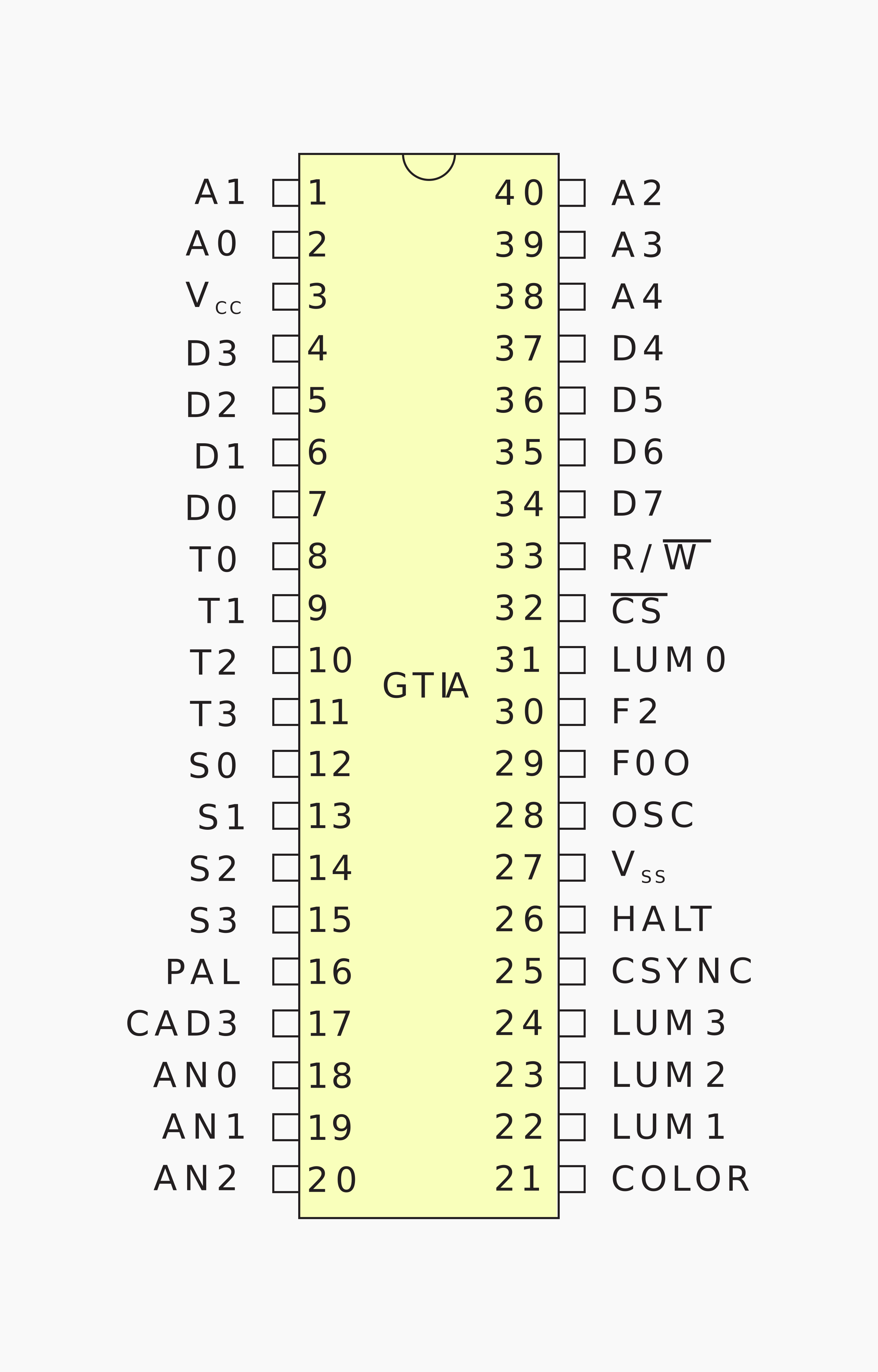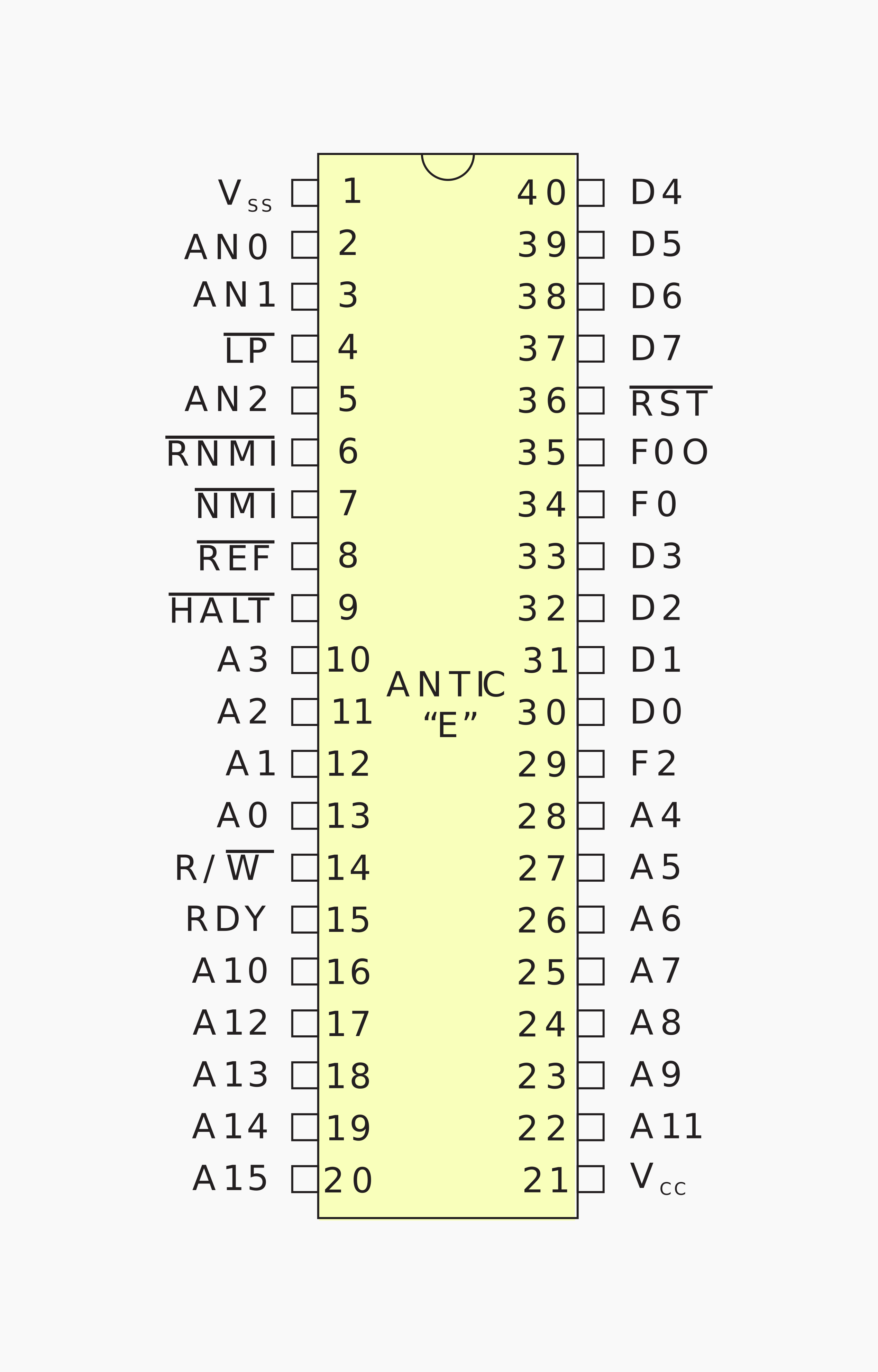 CPU, ANTIC, GTIA, POKEY, PIA pinouts and overview.